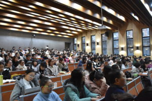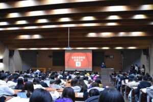 为认真贯彻落实新时代全国高等学校本科教育工作会议精神,对标刚刚结束的学校本科教学工作会议要求,提升英语双学位/双专业本科生的学习能力和学习水平,帮助学生做好即将开始的下学期英语双学位/双专业的选课工作,在学校教务处统一领导和支持下,必赢官网于12月5日下午4:30在东校园逸夫楼第一阶梯教室组织召开了全校英语双学位/双专业学生培养方案宣讲会。此次宣讲会共有来自国际商学院、国际新闻与传播学院、国际关系学院、中国语言文学学院、信息科学技术学院、法学院等六个学院的300多名学生参加。必赢官网常务副院长蔡鸿、副院长仵胜奇,院长助理廖鸿婧及学院教学办公室的庄双和窦茹苑老师参加了本次宣讲会。此次会议由学院办公室主任匡琳琳老师主持。