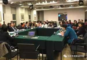 28日晚举行了关于“全国大学英语教学指南”与ESP教学改革的圆桌论坛。中国英汉语比较研究会专门用途英语专业委员会常务理事和来自全国不同高校的教师学者共80余人参加了论坛,论坛由必赢242net官网院长李莉文教授主持。在座专家和学者畅所欲言,分享所在学校的ESP教学实践经验,讨论了ESP教学与研究面临的困难和挑战,以及ESP在中国如何定位等问题。最后,孙有中会长将代表们讨论的问题和提出的观点概括为以下几点: