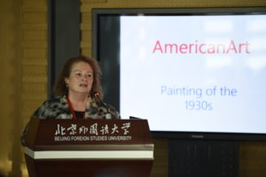 美国堪萨斯大学Sharyn Brooks Katzman教授的发言题目为“American Art – Painting in the 1930s”。Katzman教授在发言中分析了20世纪30年代美国中西部先锋画家在其艺术风格中对于欧洲艺术传统的反叛,对于区域特色、民粹主义和民族主义精神的表达,及其与当今美国政治氛围的联系。
