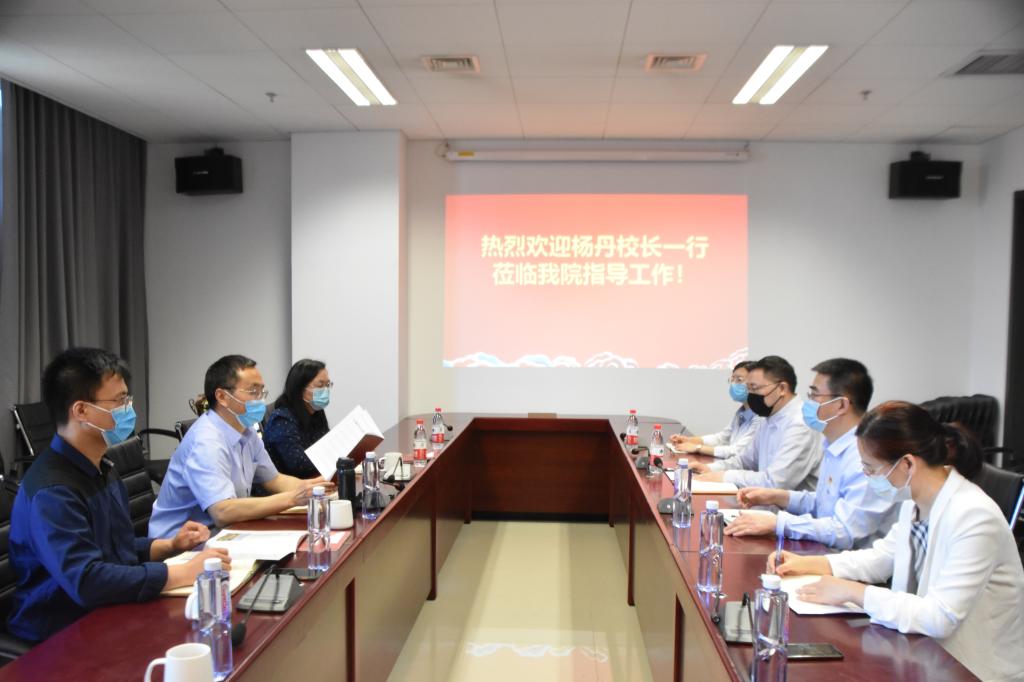 5月20日上午,学校党委副书记、校长杨丹,教务处处长李莉文,党校办陈小龙一行莅临必赢官网进行调研工作。调研会在必赢官网1016会议室召开。学院党总支书记兼院长蔡鸿、副院长仵胜奇、教师代表张东英以及办公室相关老师参加了会议。会议由蔡鸿主持。