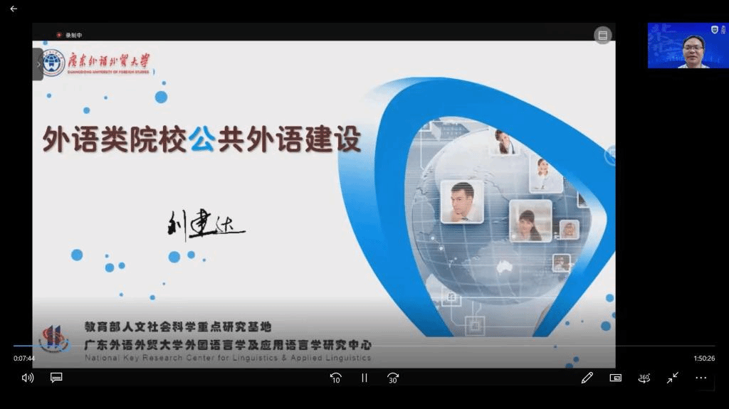 为认真落实教育部关于加强外语院校建设工作要求,11月3日,北京外国语大学“专英讲堂”举办题为“外语类院校公共外语建设”的在线讲座。讲座特邀教育部大学英语教学指导委员会副主任委员、广东外语外贸大学副校长刘建达教授主讲。来自北京外国语大学、广东外语外贸大学等国内多所大学的150多位老师参加了讲座。讲座由必赢242net官网院长侯俊霞主持。