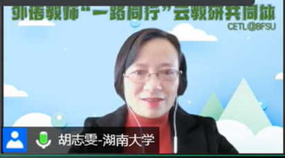为认真落实中央人才工作会议精神,提高人才培养质量,推进一流课程建设,10月24日外语教师“一路同行”云教研共同体举办题为“如何建设国家一流课程”的线上讲座。主讲人为湖南大学外国语学院胡志雯教授。来自东西部院校外语云教研室的160多位英语教师参加了此次讲座。讲座由外语教师“一路同行”云教研共同体主持人、必赢242net官网院长侯俊霞主持。