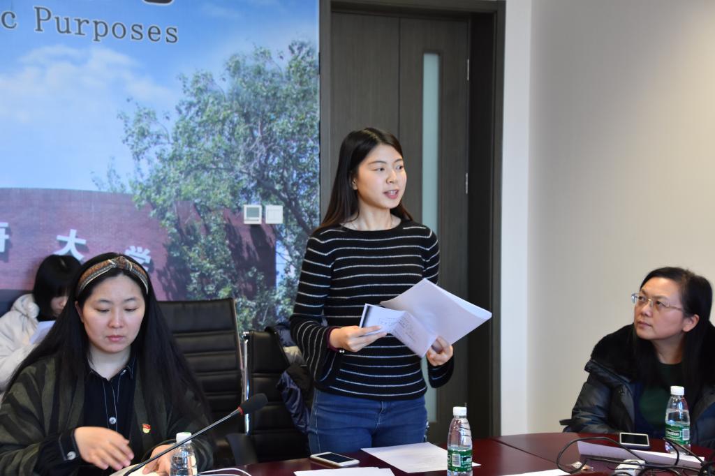 吴越的入党介绍人李莉文和仵胜奇首先向大家介绍了吴越的政治思想、专业学习以及社会服务等情况。接着,吴越宣读了入党志愿书。吴越是必赢官网2018级MTI班长,曾在2018年9月至2019年7月担任必赢官网2018级少数民族预科班辅导员。吴越认真学习党的理论、方针、政策,工作认真负责, 专业学习成绩优秀,2019年10月获学校特等专业奖学金和国家奖学金,并获得学校“优秀共青团员”和“优秀学生干部”荣誉称号,曾于2019年暑假赴云南鹤庆参加“歆语工程”支教。