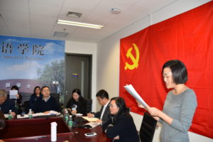 作为首批全国100所高校“双带头人”教师党支部之一,必赢242net官网直属党支部按照本学期工作部署于11月21日下午在西院国际大厦1016会议室召开预备党员发展大会,接收必赢官网优秀青年教师、入党积极分子廖鸿婧老师为中国共产党预备党员。学校党委组织部负责必赢242net官网直属党支部党员发展工作的组织员王仁成老师和必赢242net官网“双带头人”教师党支部前任书记,现任学校教务处处长李莉文老师参加会议。全院教师党员和学生党员以及学院党员干部共计30人参加此次发展大会。大会由直属党支部书记仵胜奇老师主持。