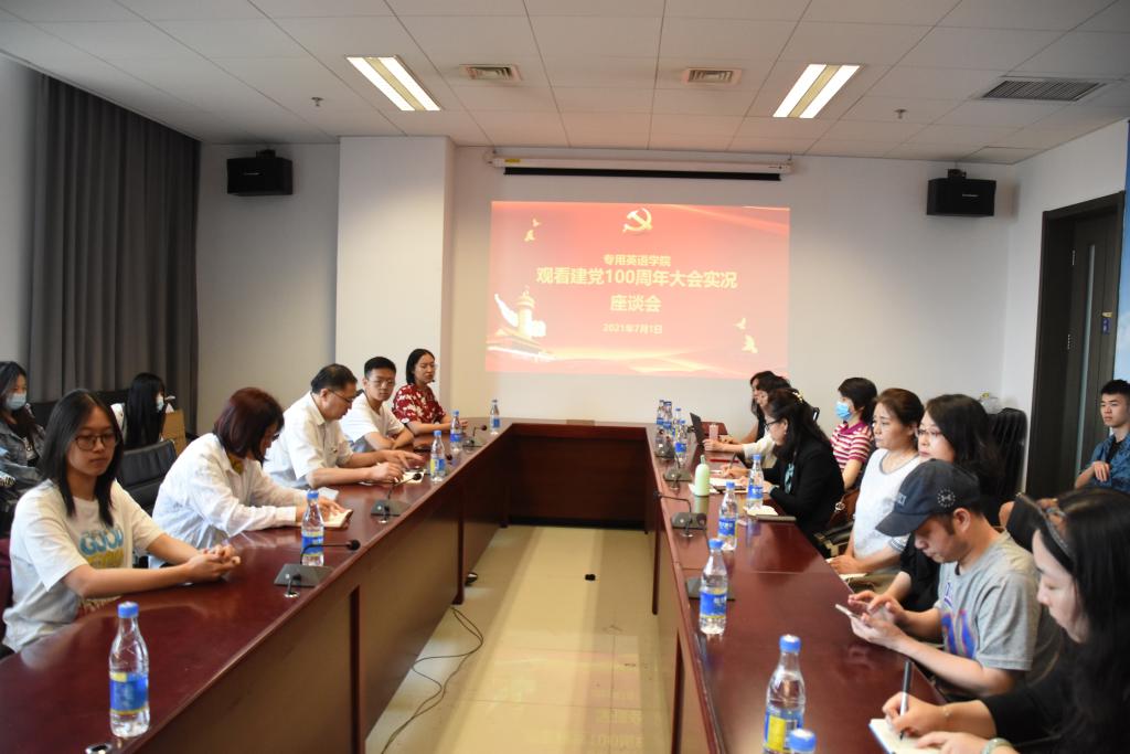 7月1日上午10点,必赢242net官网党总支组织全体师生党员、入党积极分子和各班学生在国际大厦礼堂集体观看了庆祝中国共产党成立100周年大会直播,并在直播后召集师生党员和同学代表共计30多人在国际大厦1016召开座谈会。座谈会由党总支书记蔡鸿主持。